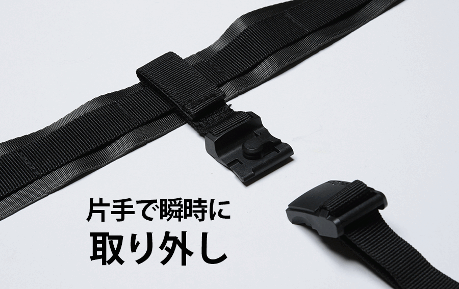 サブストラップにはFIDLOCKマグネットバックルを使用し、片手で容易に脱着することができます。