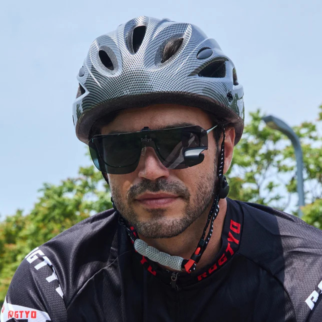 レンズ端に内蔵されたTriEye独自設計のリアビューミラーにより、視線を大きく逸らさず後方確認が可能。信号待ち・車線変更・右折時も、自然な動きで背後をチェックできます。日本国内での左側通行に最適化された右側ミラーモデルの展開となります。