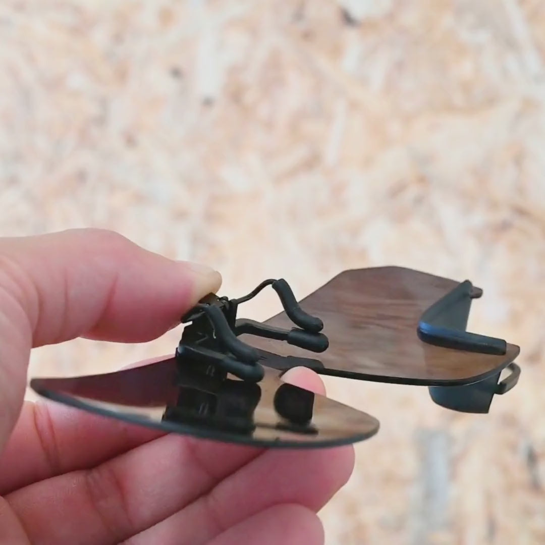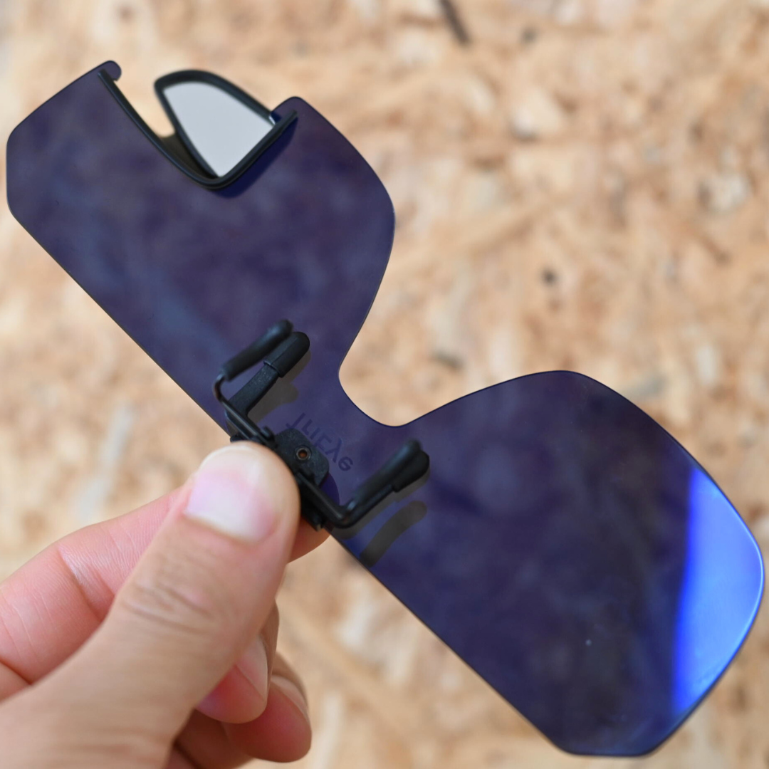 クリップ式なので普段お使いのメガネに挟むだけ。気軽にお使い頂けますので、専用サングラスを用意する必要がありません。サングラスよりもコンパクトで着脱も容易なので、カバンに忍ばせておいて状況に応じて使い分けもできます。