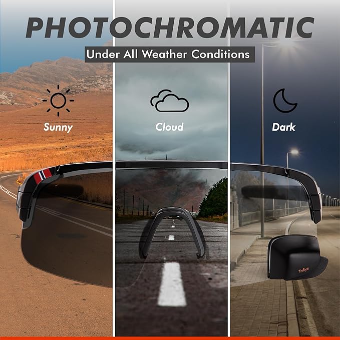 「日中の強い日差しにはスモーク、夜間や天候が不安定な日は調光レンズ」といった具合に、ライドの目的に合わせて最適な視界を自由にカスタマイズ。すでにTriEyeをお持ちの方も、本スペアレンズに交換するだけで、全天候対応の調光モデルとしてアップグレードできます。