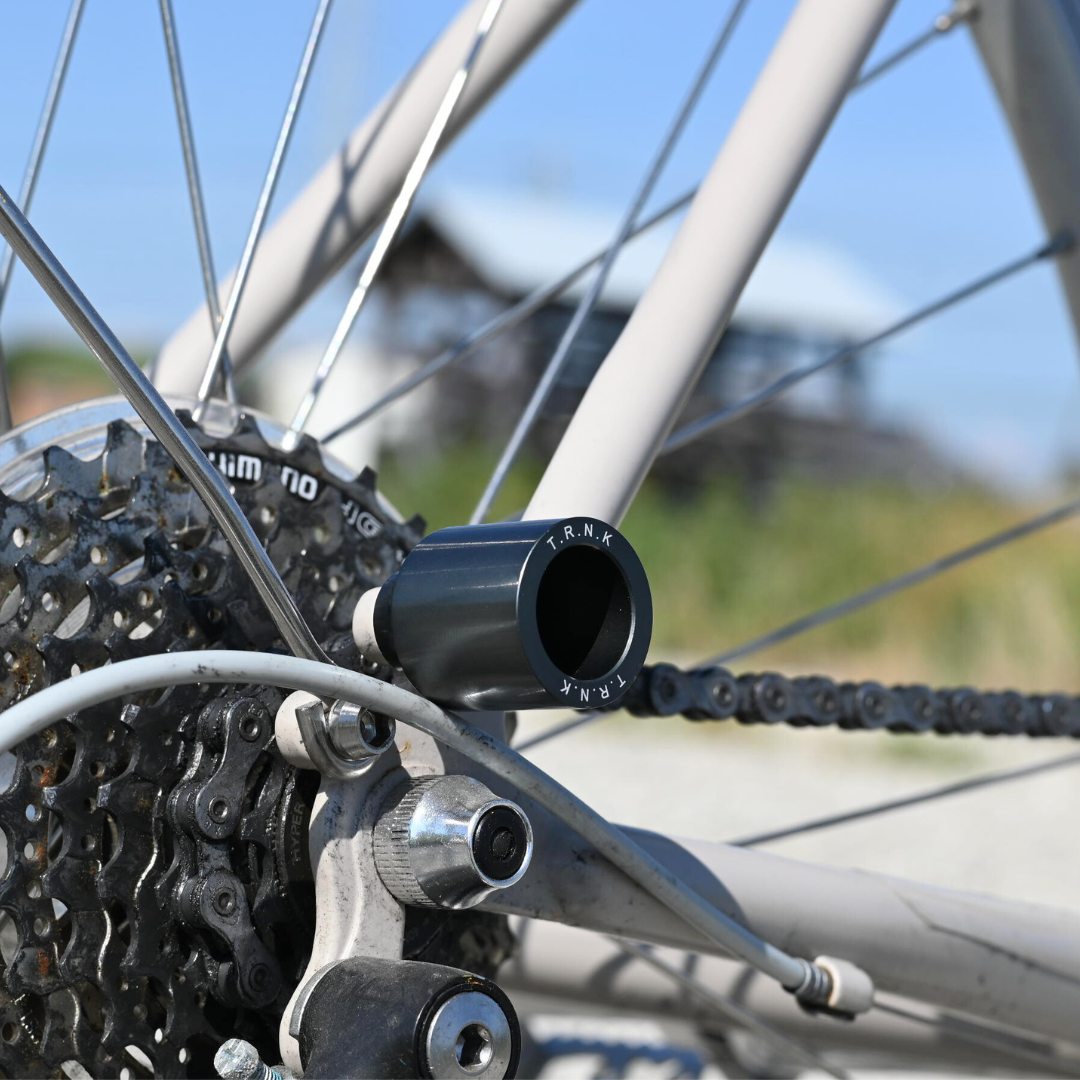 フロントフォークのダボ穴、キャリアマウント、フォークエンドなど、M5ネジ穴がある場所なら取り付けOK。ライトの取付位置を下げることで、ハンドル周辺がすっきりし、路面を照らしやすいので視界も確保しやすくなります。
